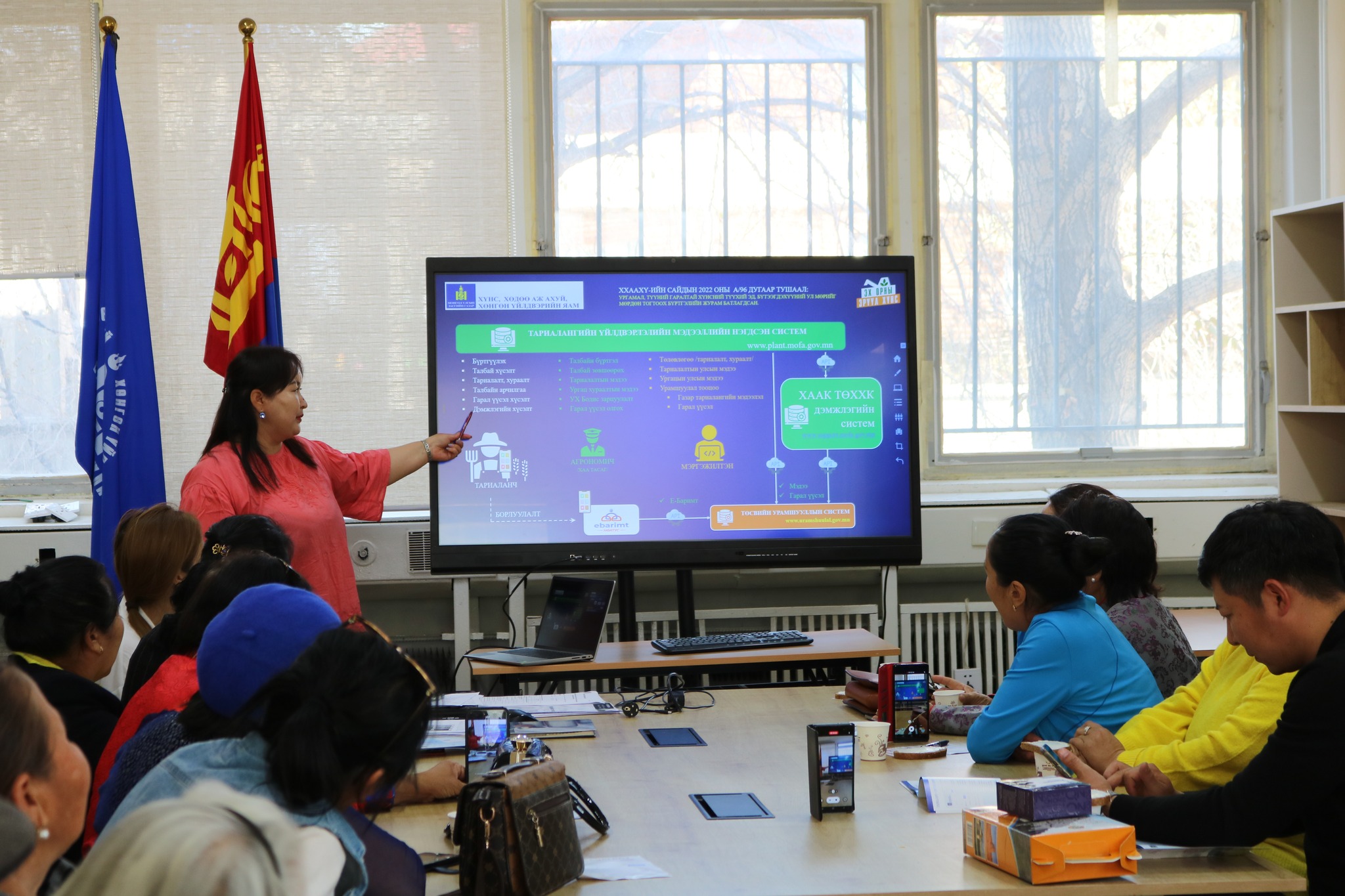 Үүнтэй холбоотой газар тариалангийн салбарын мэдээ, мэдээллийг нэгдсэн цахим бүртгэлд оруулах, мөнгөн урамшууллын материалыг цахимаар бүрдүүлэн олгох, иргэний QR код үүсгэн Е-Баримт өгөх мэдлэгийг олгох зорилгоор www.plant.mofa.gov.mn цахим системд бүртгэх сургалт зохион байгууллаа.