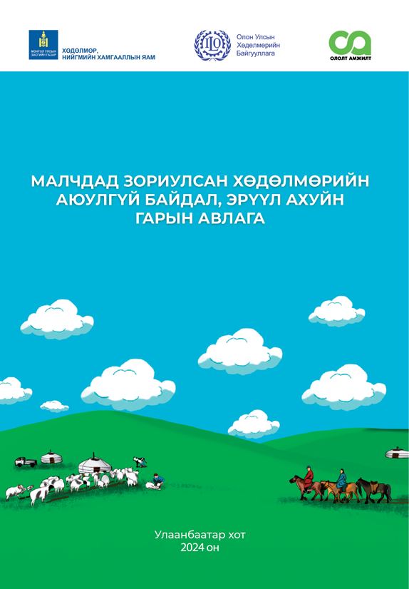 “Хөдөлмөрийн аюулгүй байдал, эрүүл ахуйн сарын аян-2024” арга хэмжээний хүрээнд Хөдөлмөр, нийгмийн хамгааллын яам, Олон улсын хөдөлмөрийн байгууллагаас гаргасан “Малчдад зориулсан хөдөлмөрийн аюулгүй байдал, эрүүл ахуйн гарын авлага” номыг аймгуудын Хүнс, хөдөө аж ахуй газраар дамжуулан мал аж ахуйн үйдвэрлэл эрхлэгч, малчдад хүргэж байна.